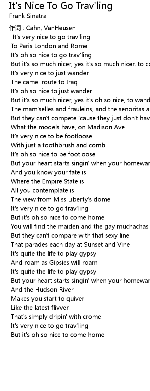 | But it' s so much nicer, yes it' s oh so nice, to wander back | |