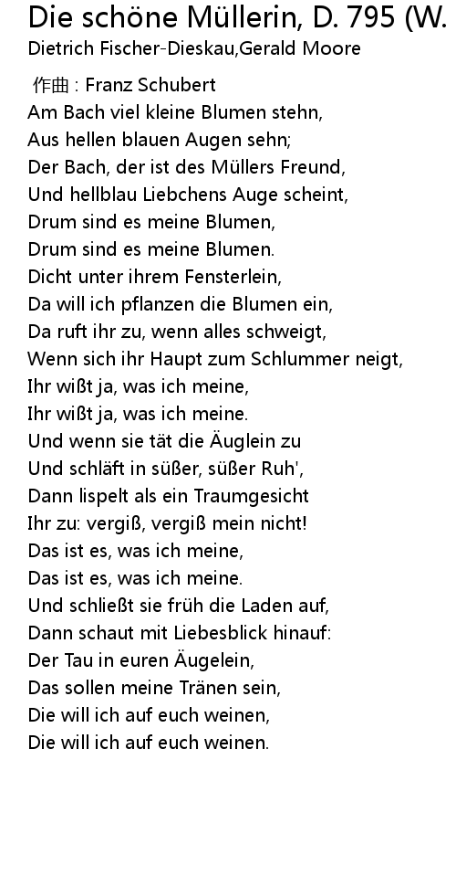 | Song | Die schöne Müllerin, D. 795 (W. Müller) (1997 Digital Remaster): Des Müllers Blumen |