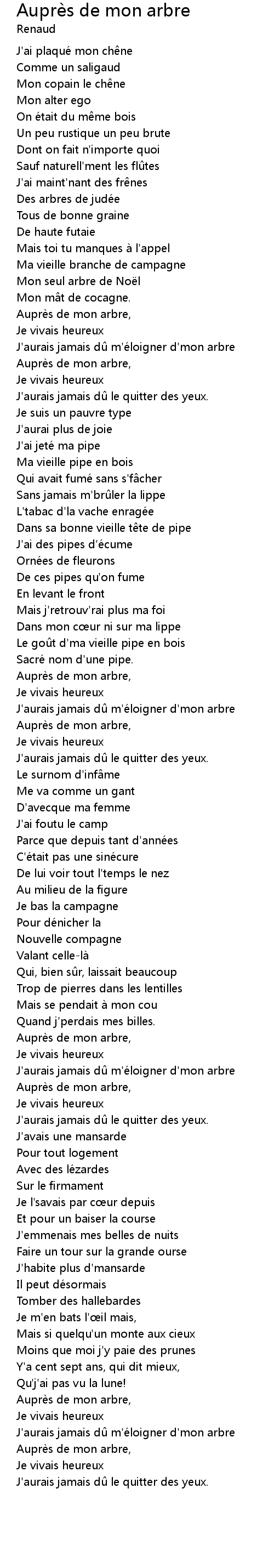 | J' aurais jamais d m'e loigner d' mon arbre | |