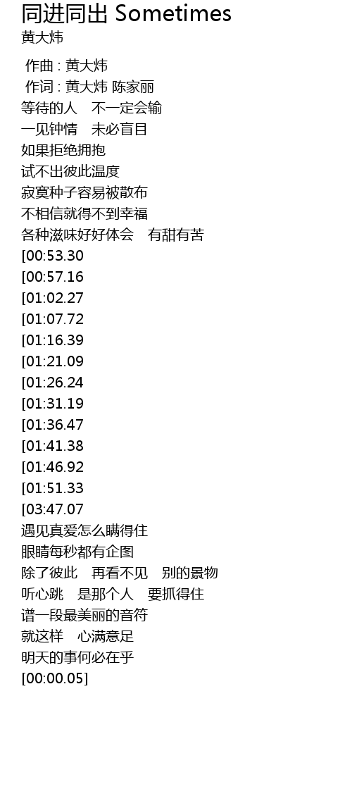 | [03:37.33][01:46.92] | 同进同出 换个角度 |