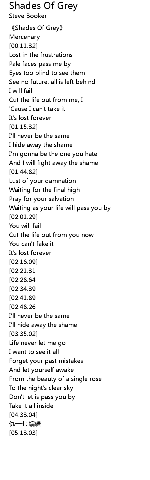 | [00:00.68] | 《Shades Of Grey》 |