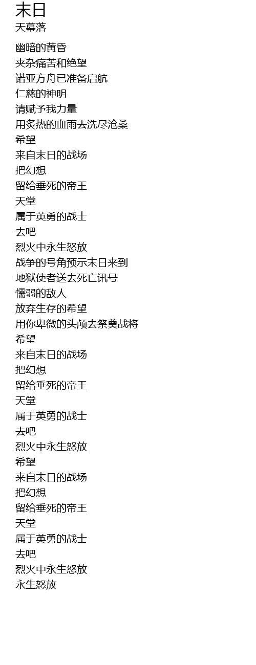 | [03:24.99] | 战争的号角预示末日来到 |