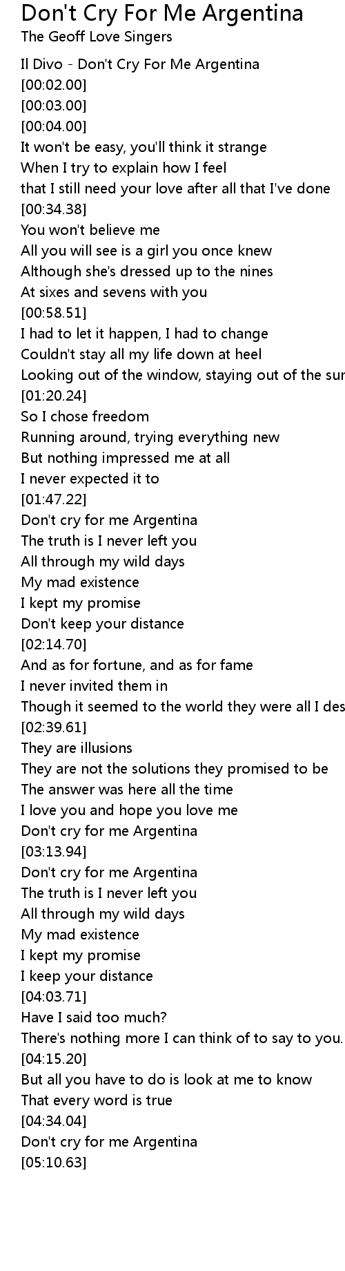 [00:01.00] Il Divo - Don't Cry For Me Argentina