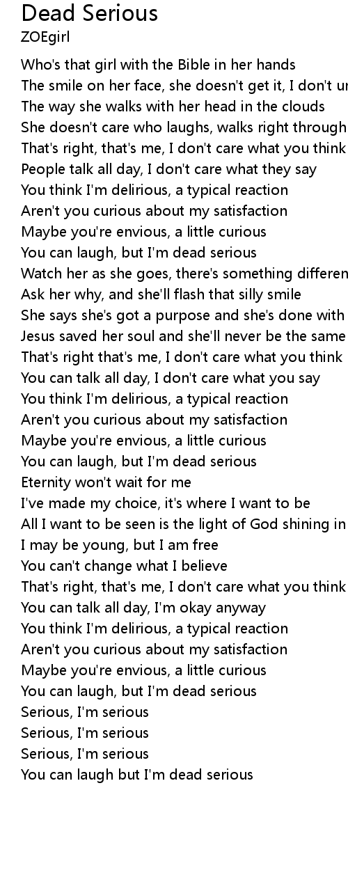 You can laugh but I'm dead serious |