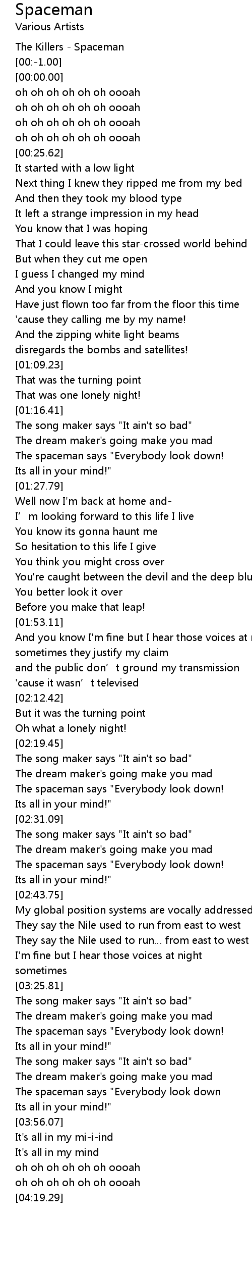 | [02:38.34] | The spaceman says "Everybody look down! |