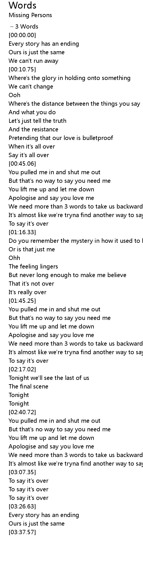 | [00:57.73] | We need more than 3 words to take us backwards |