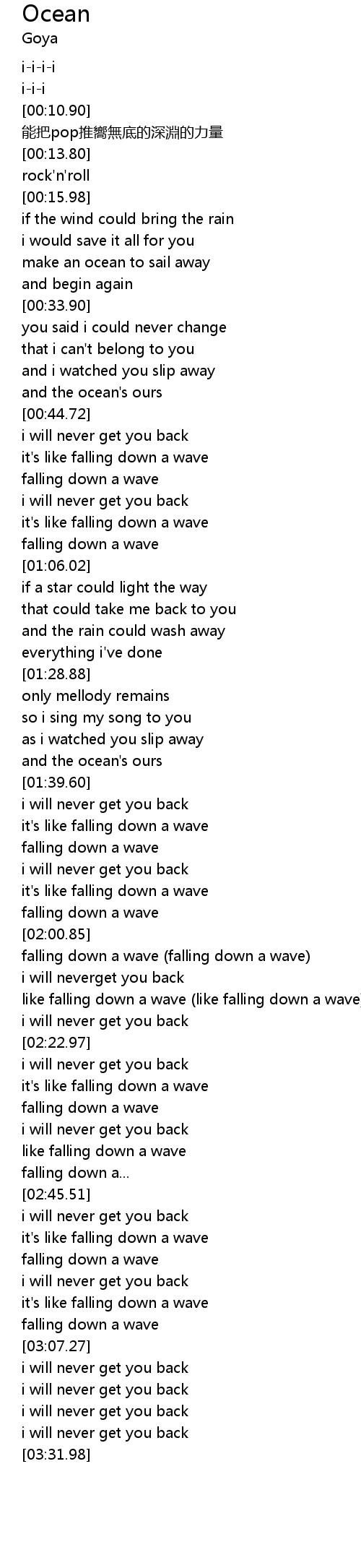 | [02:31.23] | falling down a wave |