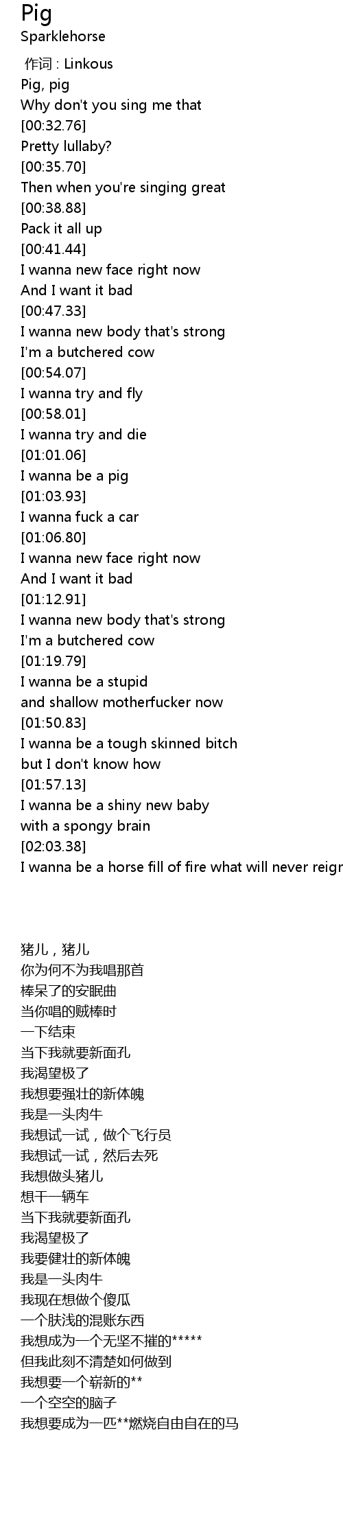 | [01:02.05] | I wanna be a pig |
