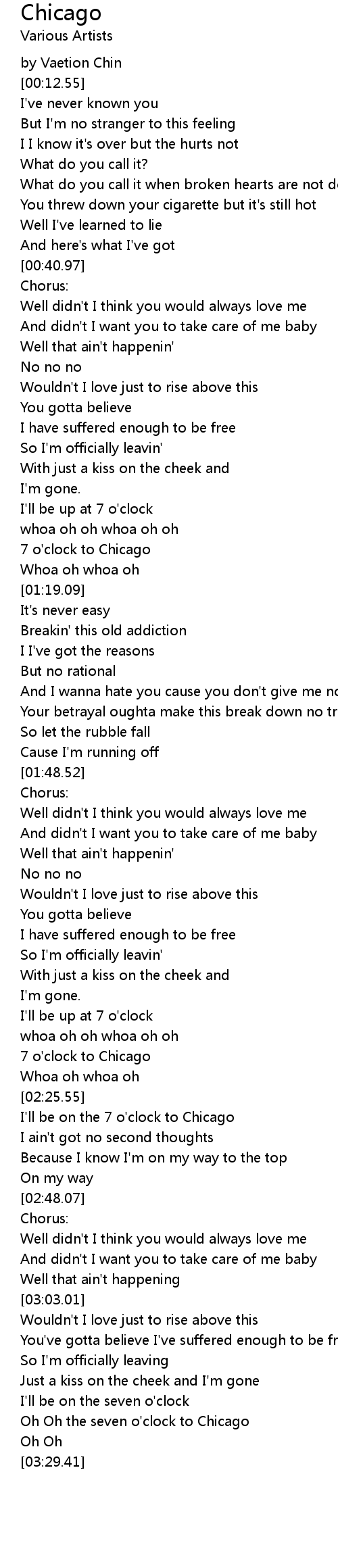 Oh Oh the seven o'clock to Chicago |