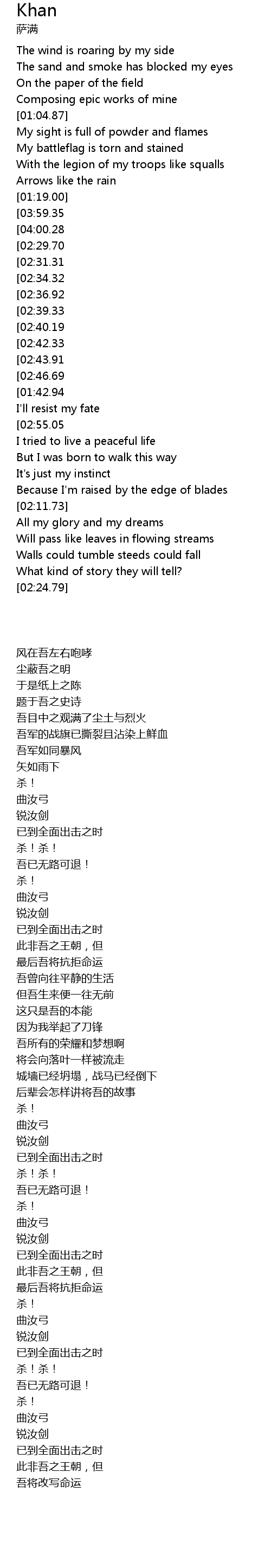 | [04:14.45][02:42.33][01:35.56] | Whet your sword |