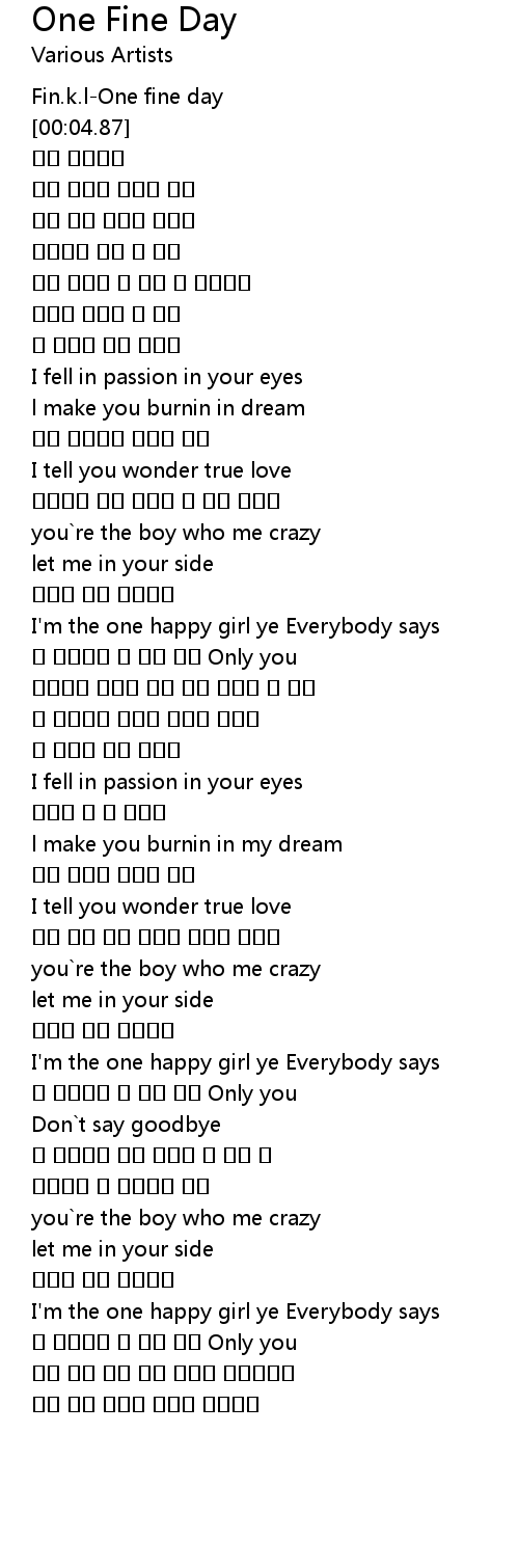 | [01:21.39] | 저 하늘보다 큰 나의 사랑 Only you |