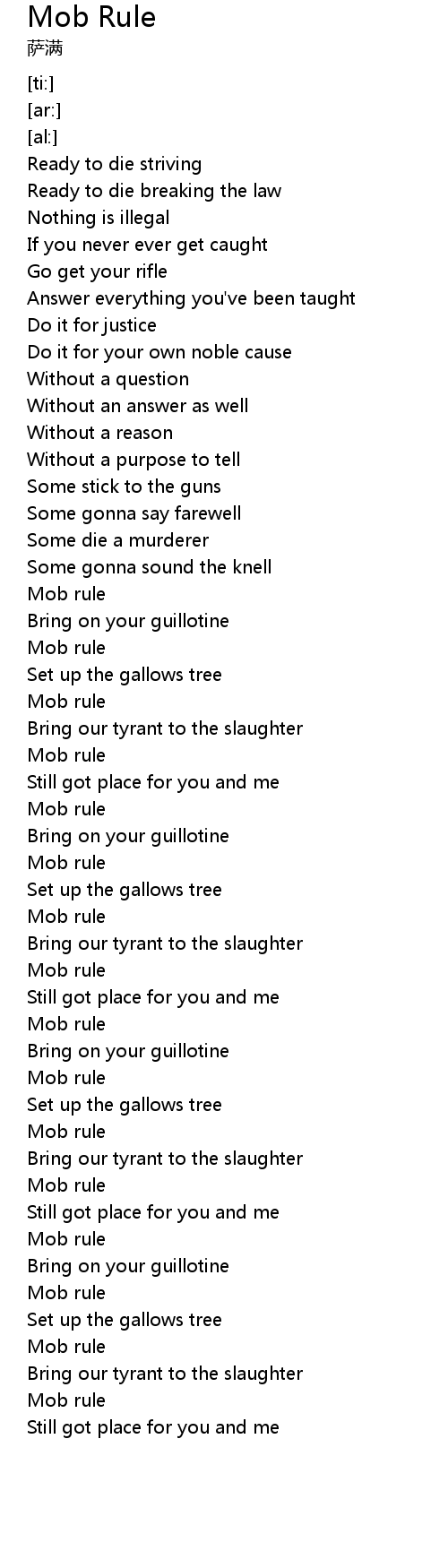 | [01:36.10] | Bring our tyrant to the slaughter |