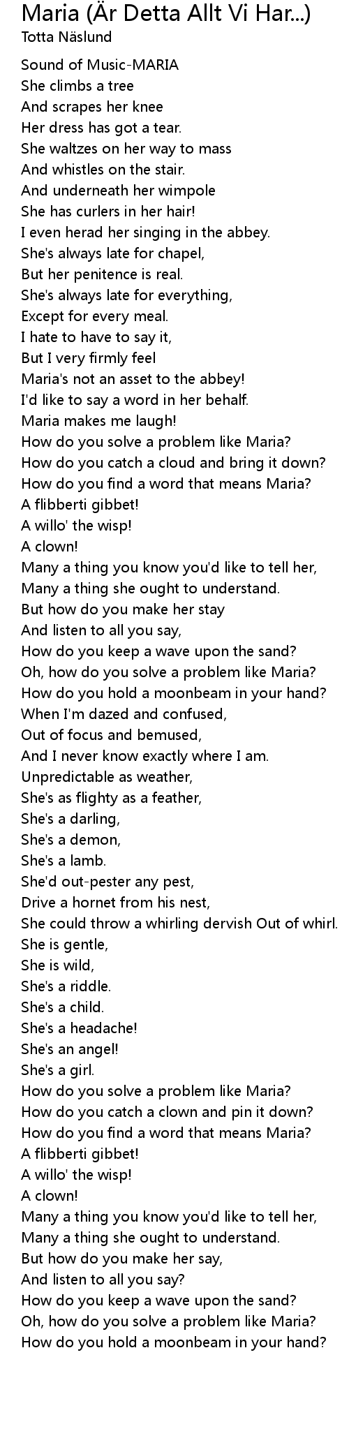 Maria r Detta Allt Vi Har... Lyrics