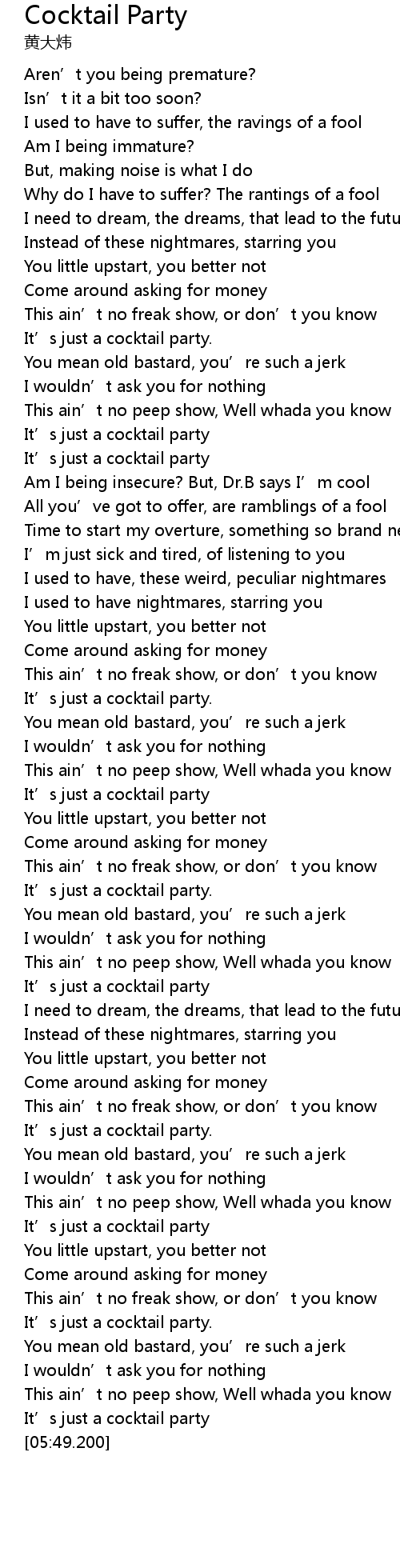 | [02:15.200] | It' s just a cocktail party |