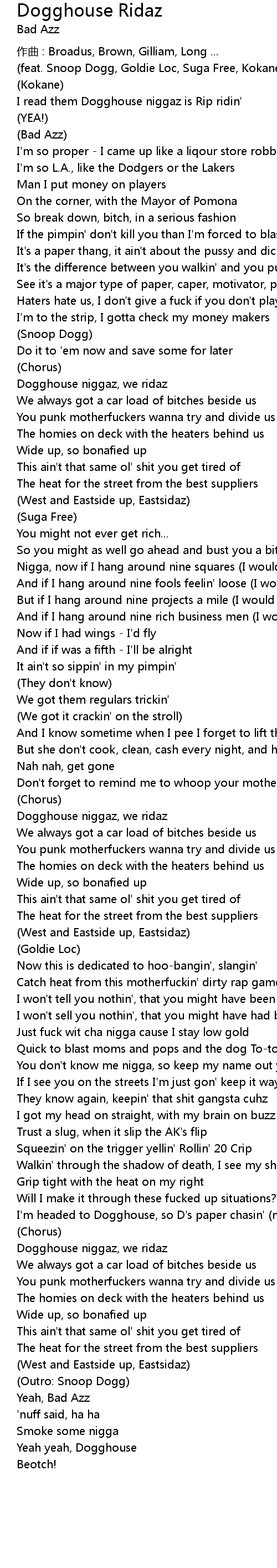 | Dogghouse niggaz, we ridaz | |