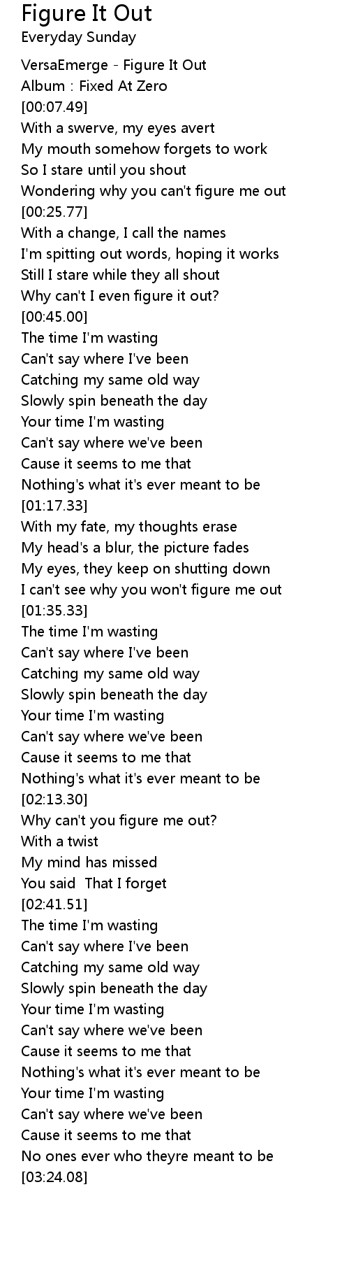 | [00:01.49] | VersaEmerge - Figure It Out |