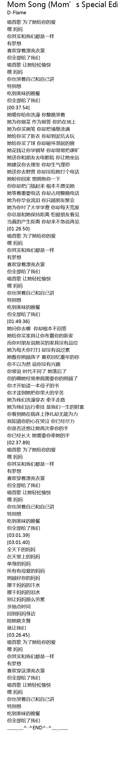 | [03:49.63] | ﹏﹏_﹏^-^END^-^﹏_﹏﹏ |