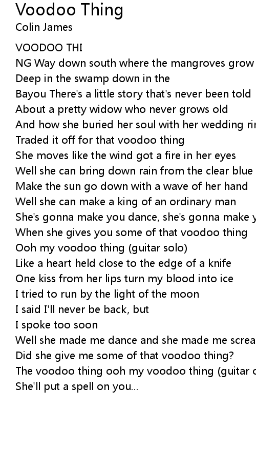 The voodoo thing ooh my voodoo thing (guitar out) |
