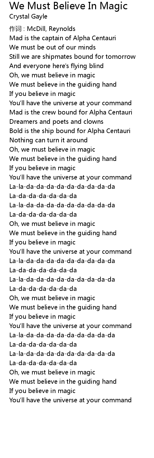 | Oh, we must believe in magic | |