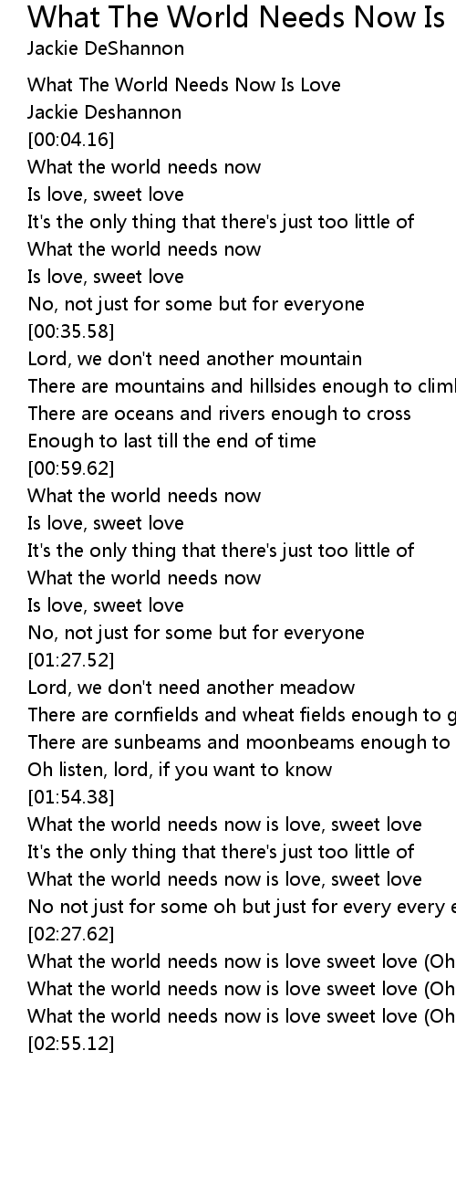 What the world needs now is love sweet love (Oh is love) |