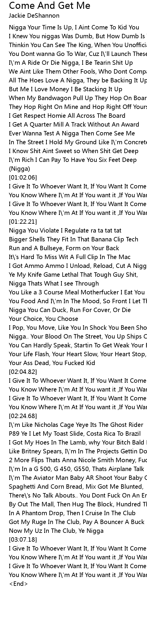 You Know Where I\'m At If You want it ,If You Want It Come Get Me |