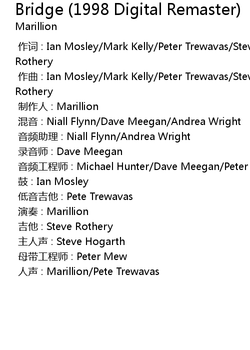 | [00:00.000] | 人声 : Marillion/Pete Trewavas |