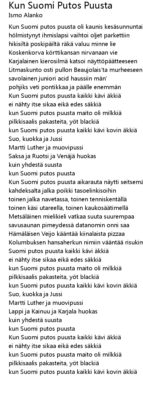 | kun Suomi putos puusta kaikki k vi kovin kki | |