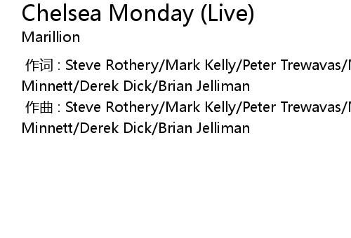 | [00:00.000] | zuo qu : Steve Rothery Mark Kelly Peter Trewavas Michael Pointer Diz Minnett Derek Dick Brian Jelliman |