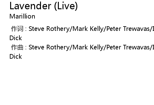 | [00:00.000] | zuò cí : Steve Rothery Mark Kelly Peter Trewavas Ian Mosley Derek Dick |