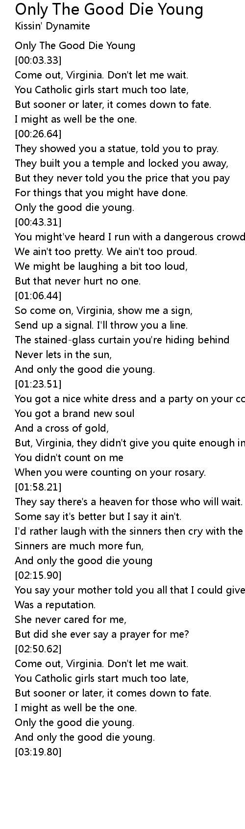 Only The Good Die Young |