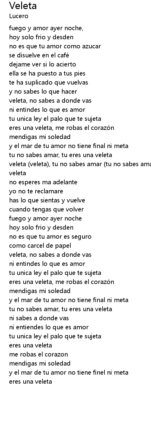 | veleta veleta, tu no sabes amar tu no sabes amar tu eres una | |