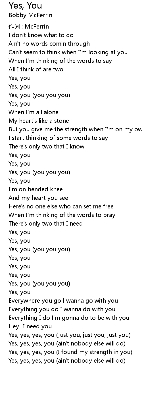 | Yes, yes, yes, you (just you, just you, just you) | |