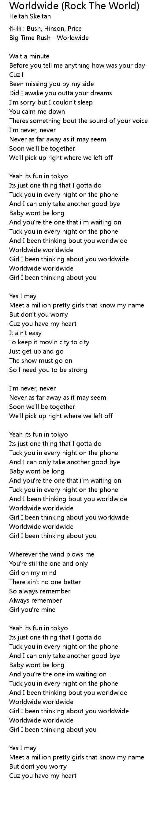| Girl I been thinking about you worldwide | |