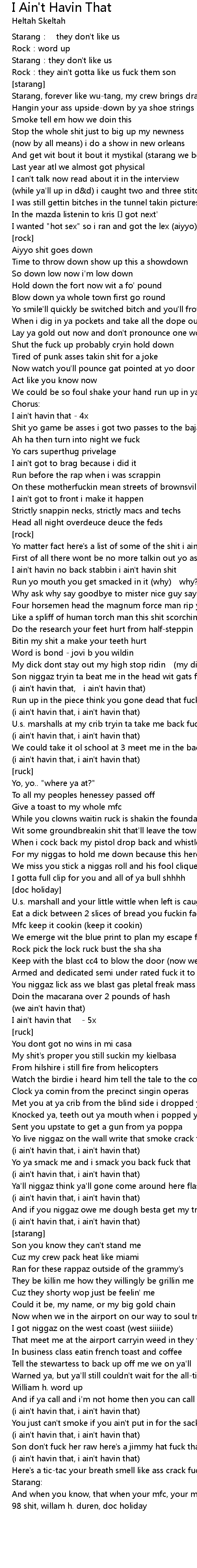 | Yo matter fact here' s a list of some of the shit i ain' t havin | |
