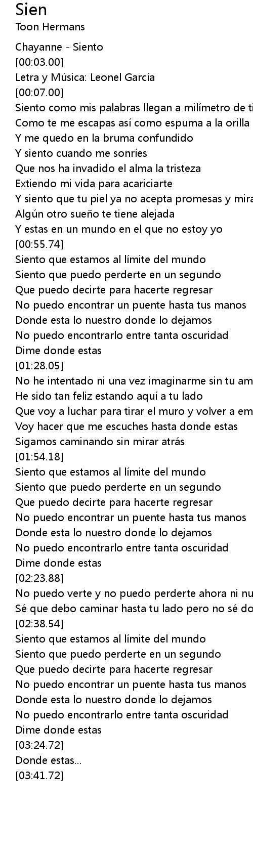 | [00:01.00] | Chayanne Siento |