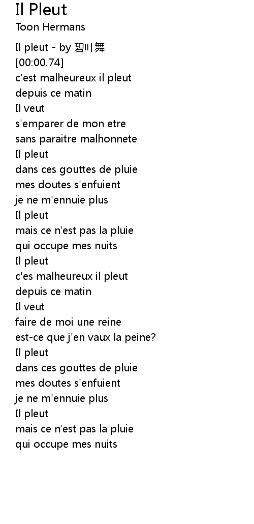 | [00:00.00] | Il pleut by bì yè wǔ |