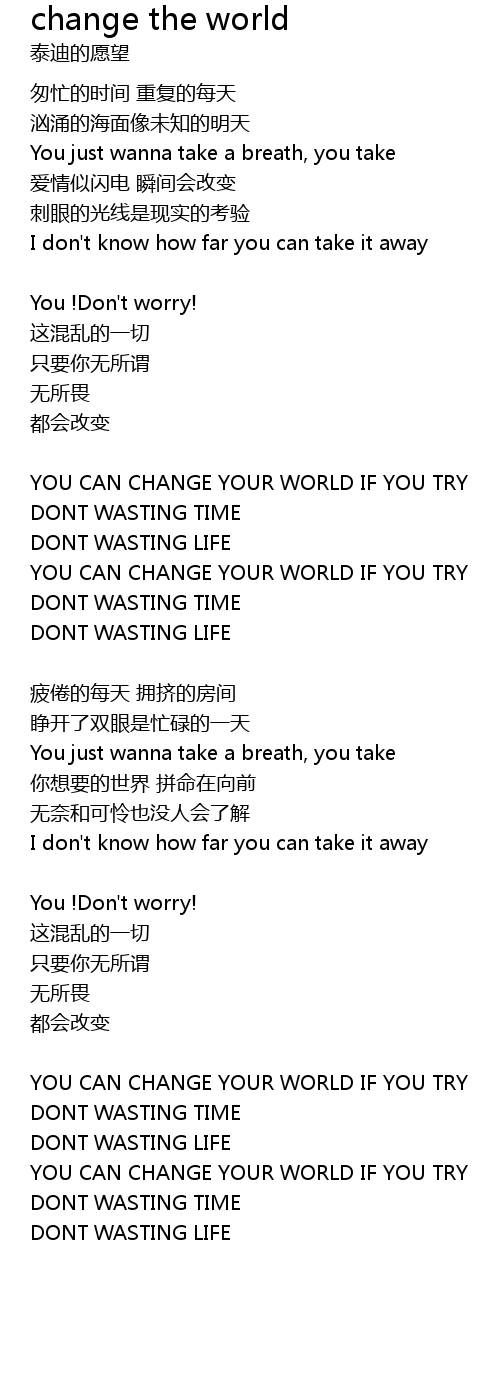| YOU CAN CHANGE YOUR WORLD IF YOU TRY | |