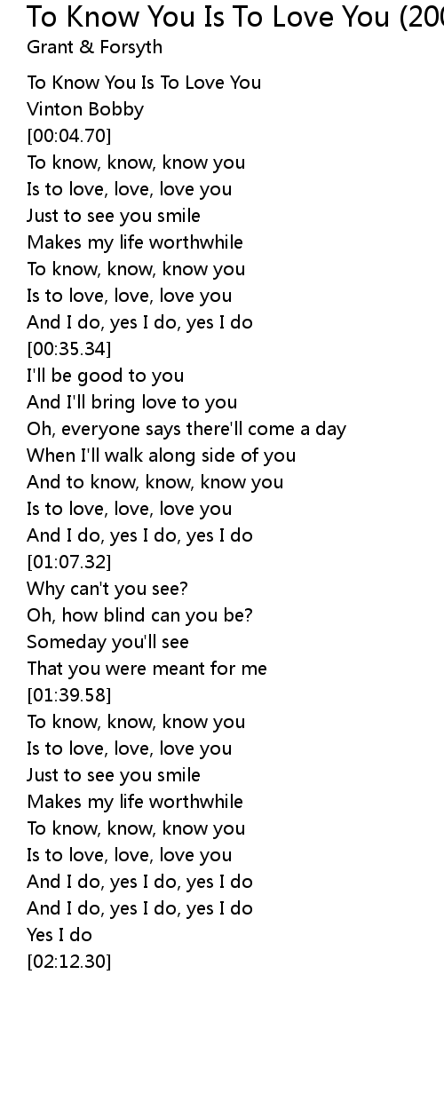 To Know You Is To Love You (2007 Digital Remaster) Lyrics