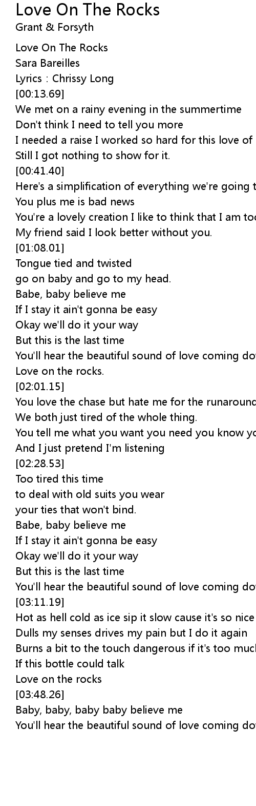 | [00:15.27] | We met on a rainy evening in the summertime |