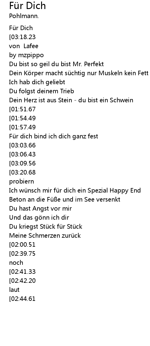 | [01:26.11] | Ich wünsch mir für dich ein Spezial Happy End |