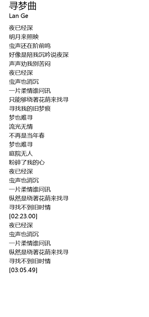 | [02:59.91] | xún zhǎo bu dào jiù shí qíng |