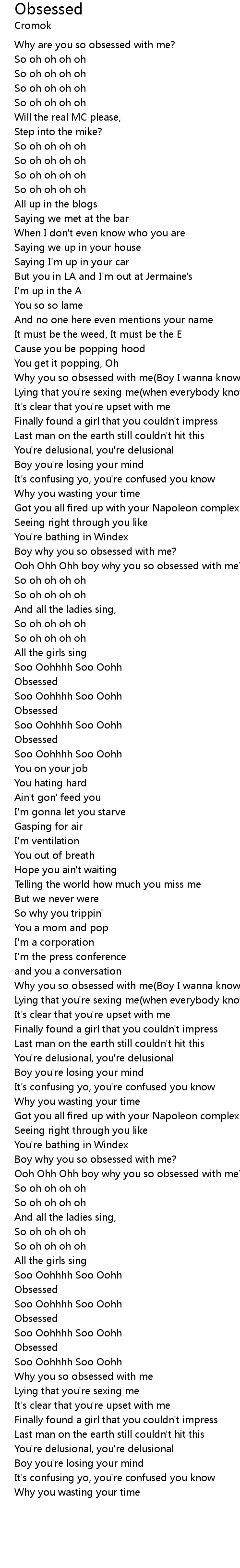 | Ooh Ohh Ohh boy why you so obsessed with me? | |