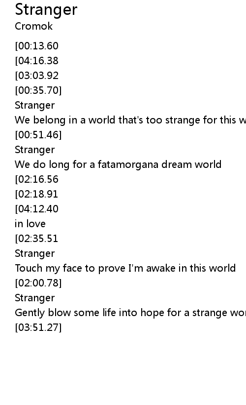 | [00:42.35] | We belong in a world that's too strange for this world |