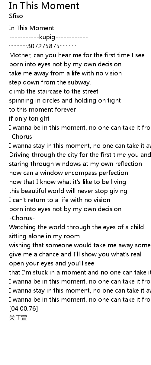 | [03:43.58] | I wanna be in this moment, no one can take it from me |