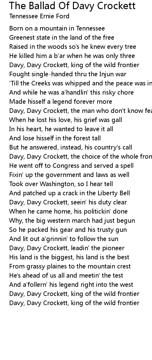 The Ballad Of Davy Crockett Lyrics