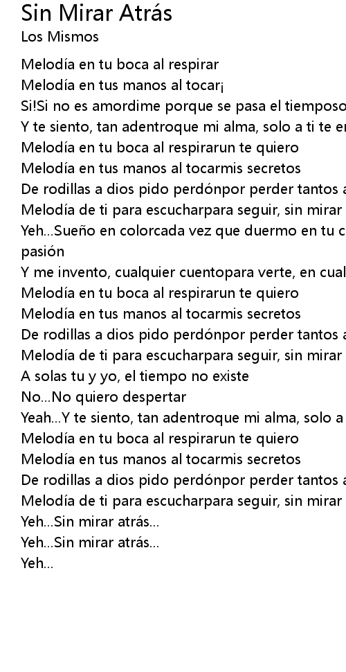 | Melodí a de ti para escucharpara seguir, sin mirar atrá s | |