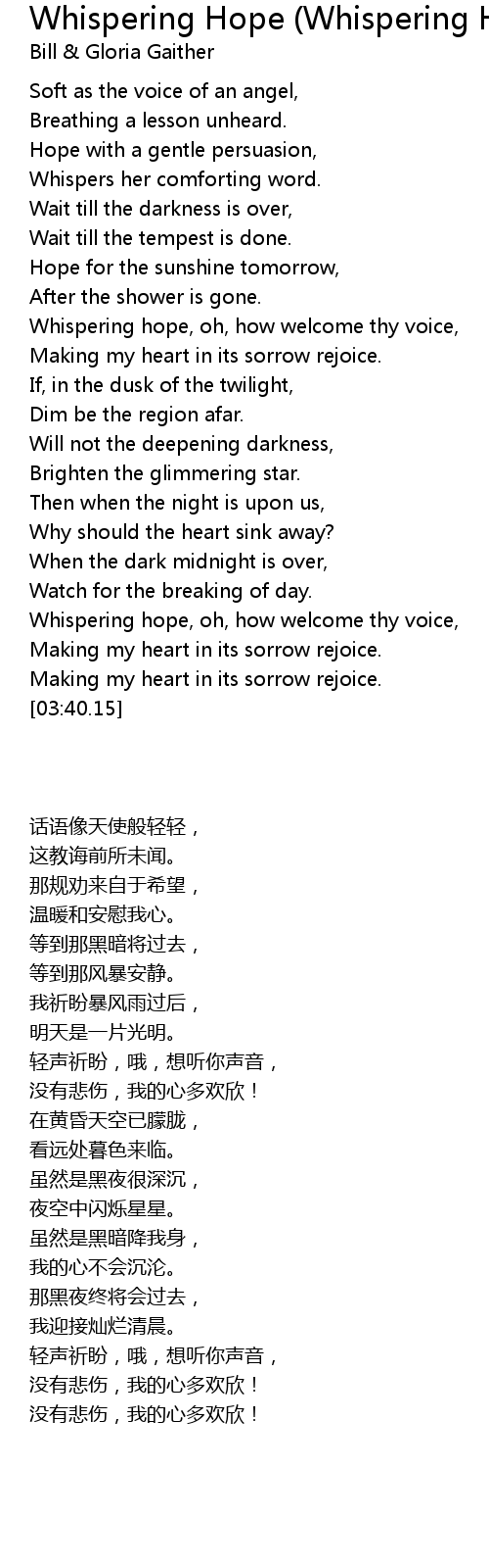 [02:49.44] Whispering hope, oh, how welcome thy voice,