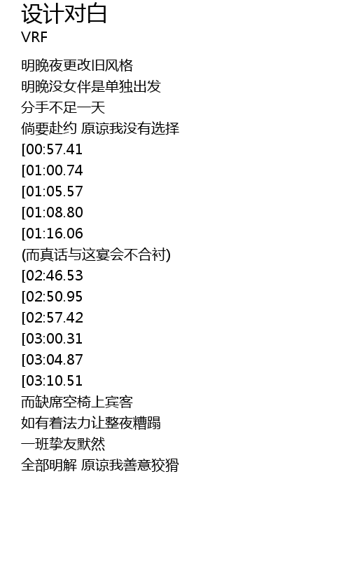 | [02:33.44][01:08.80] | Wow Lie 念谎话太似设计精品 |