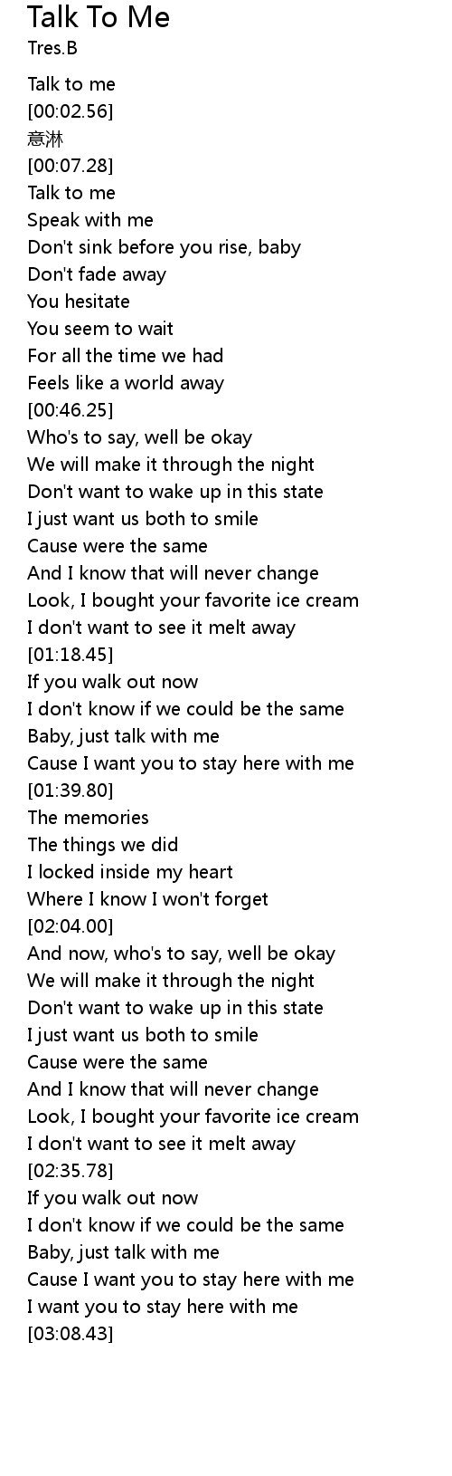 | [00:17.54] | Talk to me |