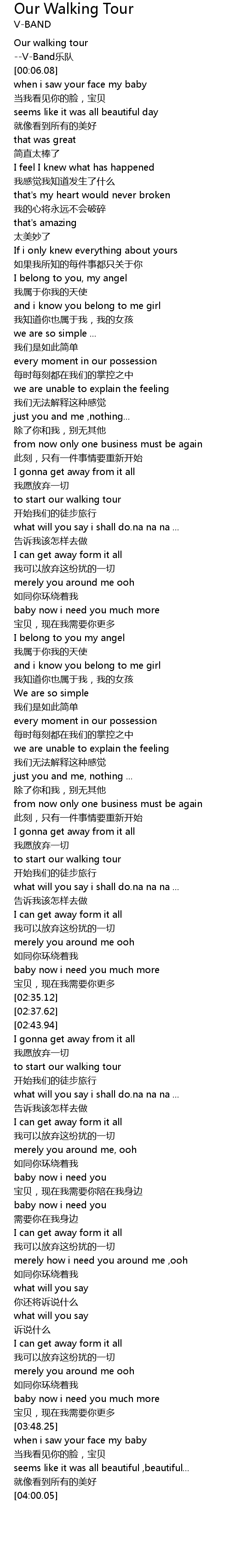 | [01:18.32] | kāi shǐ wǒ men de tú bù lǚ xíng |